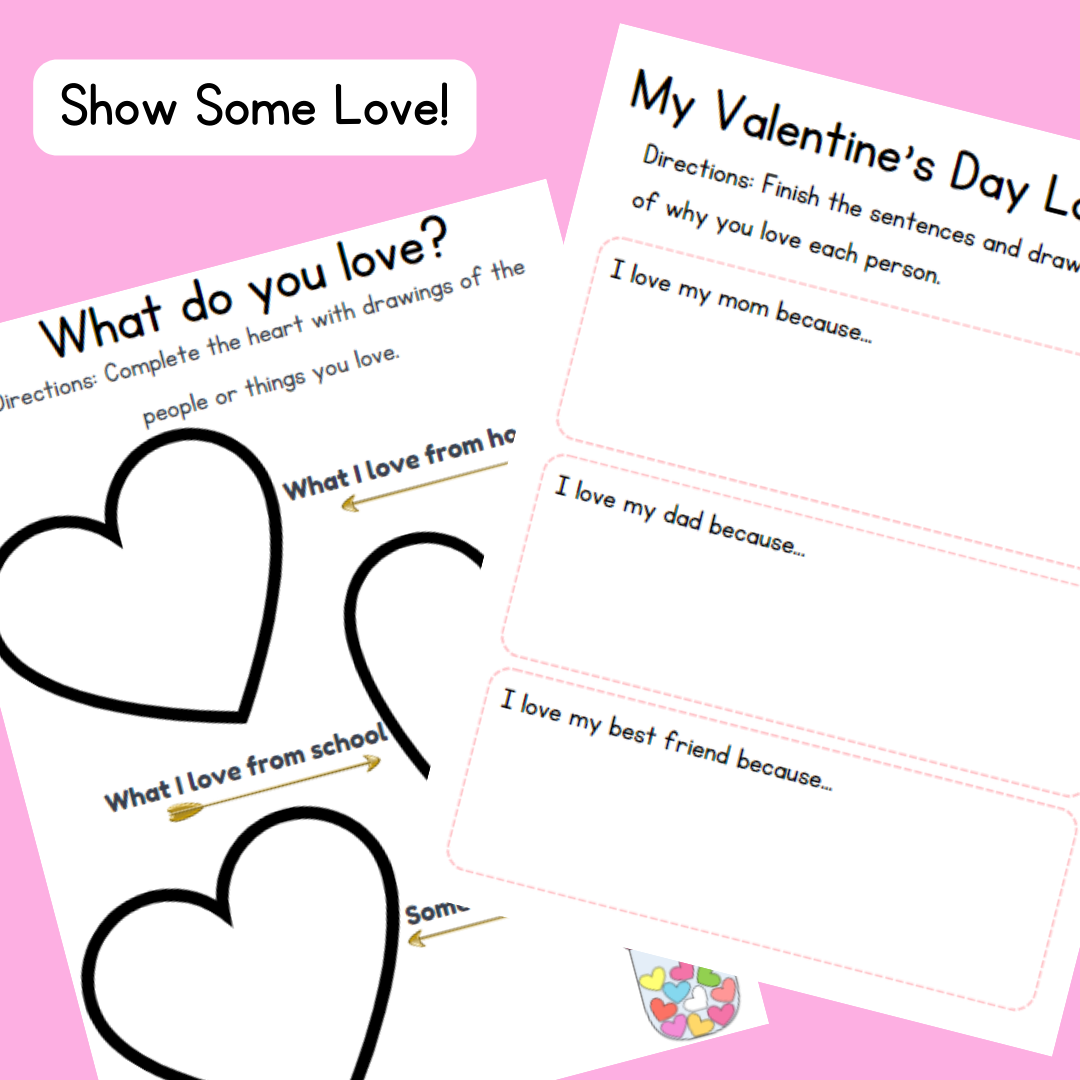Entertain little ones this Valentine's Day with this fun 14 page activity book. It includes tracing, coloring, cutting, and more! Have fun completing mazes, finding the missing objects, and completing the word search. Practice your letters, sorting and pattern skills, and learn vocabulary words. Have a discussion about who and what you love, and then complete the two love list activities.